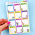 These cute and functional box stickers are perfect for jotting your birthdays for each month. There is a sticker for each month of the year. The size is 1.5" wide by 1.6" tall.