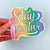This lovely decal features the words "Stay Positive" in a rainbow of colors. This is printed on our matte removable vinyl and laminated for extra protection. The size is 4" x 4".