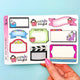 This listing is for a sheet of larger sized bow clip sticky note stickers in a variety of colors. The smaller ones are about 1" and the bigger are 1.5".