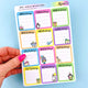 This listing is for a sheet of adorable cloud box stickers featuring a rainbow grid in a rainbow outlined cloud, perfect for writing in your plans! You can orient these either horizontally or vertically. Imagine the possibilities! The smaller ones are about 1.5" x 1.9" and the biggest one is 2.8" x 3.25".