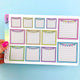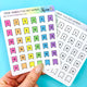 This listing is for decorative date number box stickers featuring little sprinkles with our Shine color palette and bubble lettering. There are a full month of stickers on the sheet, plus a few extra decorative stickers. These are .8" x .8" in size.