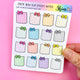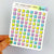 This listing is for a sheet of these checklist square box stickers. These are great in any planner! These are .35" x .35" in size, and there are a whopping 80 stickers on each sheet and you have a choice between pastel rainbow colors and neutral color palettes.