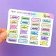 This listing is for this super cute sheet of stickers featuring deco and box stickers in various sizes, perfect for your spring planner spreads! There are half-box and full-box sizes as well as two larger ones that are about 3.5" long. These match our Feeling Froggy collection perfectly!