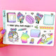 This listing is for one sheet of these cute deco stickers. Artwork in this kit was hand-drawn by us and features our character Star the Unicorn making and enjoying her special "Starberry" lemonade. These stickers are perfect for summer!
