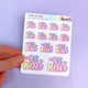 Use this big sticker to cover a page in your planner or bullet journal so you'll have the cutest spot for jotting down your plans! These are sized slightly smaller than the page, allowing for margins which makes for easier placement and centering. Choose your jumbo sticker sized from the following standard sizes: Passport, A6 (Hobonichi), Weeks (Hobonichi/PP), B6, and A5 (Hobonichi Cousin).