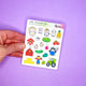 Printed on 3.625" x 4.5" sticker paper and kiss-cut for easy removal.
