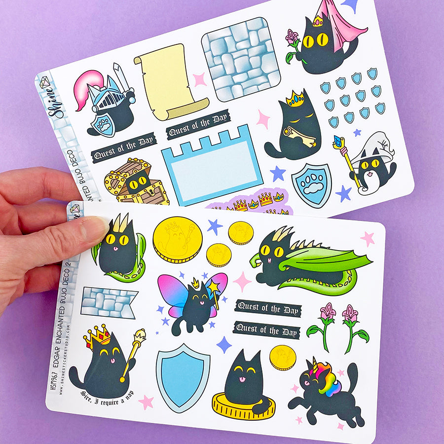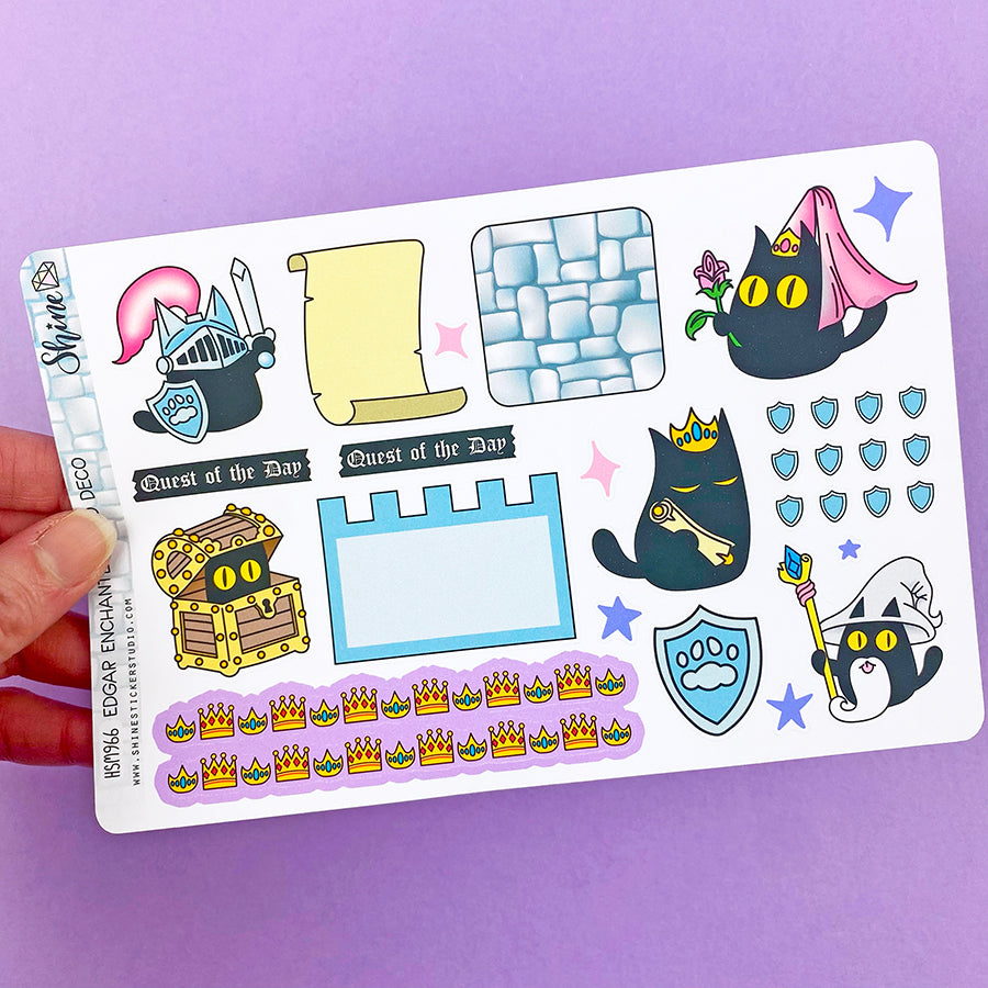 This listing is for a sheet of larger sized stickers featuring elements from our Edgar Enchanted collection. These are perfect for bujo planning (bullet journaling) where you can freestyle and get really creative with your planner page decorations. These stickers are larger than our quarter sheet sized deco stickers, and smaller than our die cut stickers. You can even write on some of them!