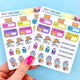 This listing is for a sheet of washi strip stickers sized to fit the Hobonichi Cousin daily pages, although these could also be used in the weekly pages if you wanted. The large strips are great for the bottom of the page, and the smaller can be used to divide the right side column. These feature artwork from our Hello Autumn collection.