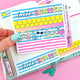 This listing is for one sheet of highlighted weekday stickers featuring a rainbow color palette. There are three full week sets on the page. These are approximately .5" tall.