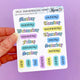 This listing is for a sheet of two sets of weekday stickers that match our Rainy Day collection. The longest one is about 2.5" long.