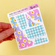 This listing is for this sheet of functional patterned box stickers in a variety of sizes that match our Rise & Shine collection.