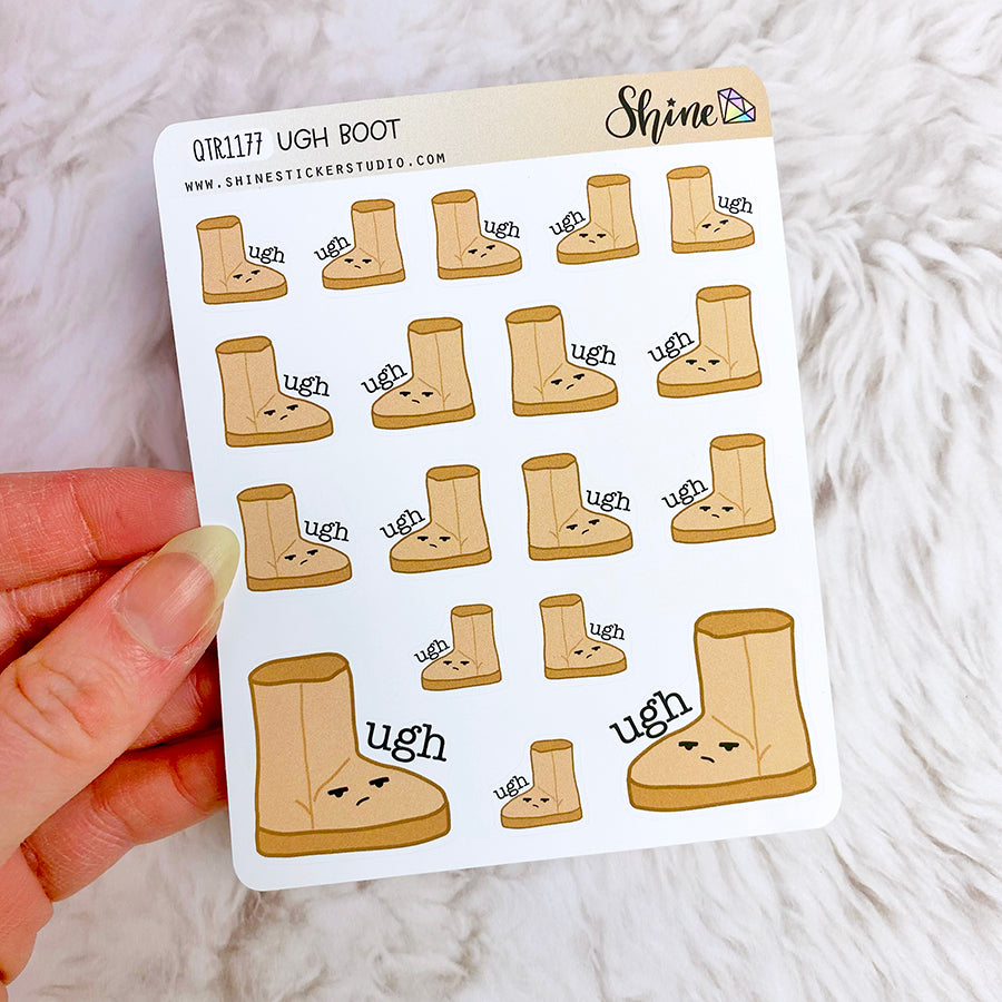 This sheet of stickers features an adorable and sassy "ugh" boot in a variety of sizes.