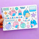 This sticker sheet features these "Unbearably Cute" stickers in three different styles ranging in size up to 1" tall by 1.7" long. There are 10 stickers on the sheet.