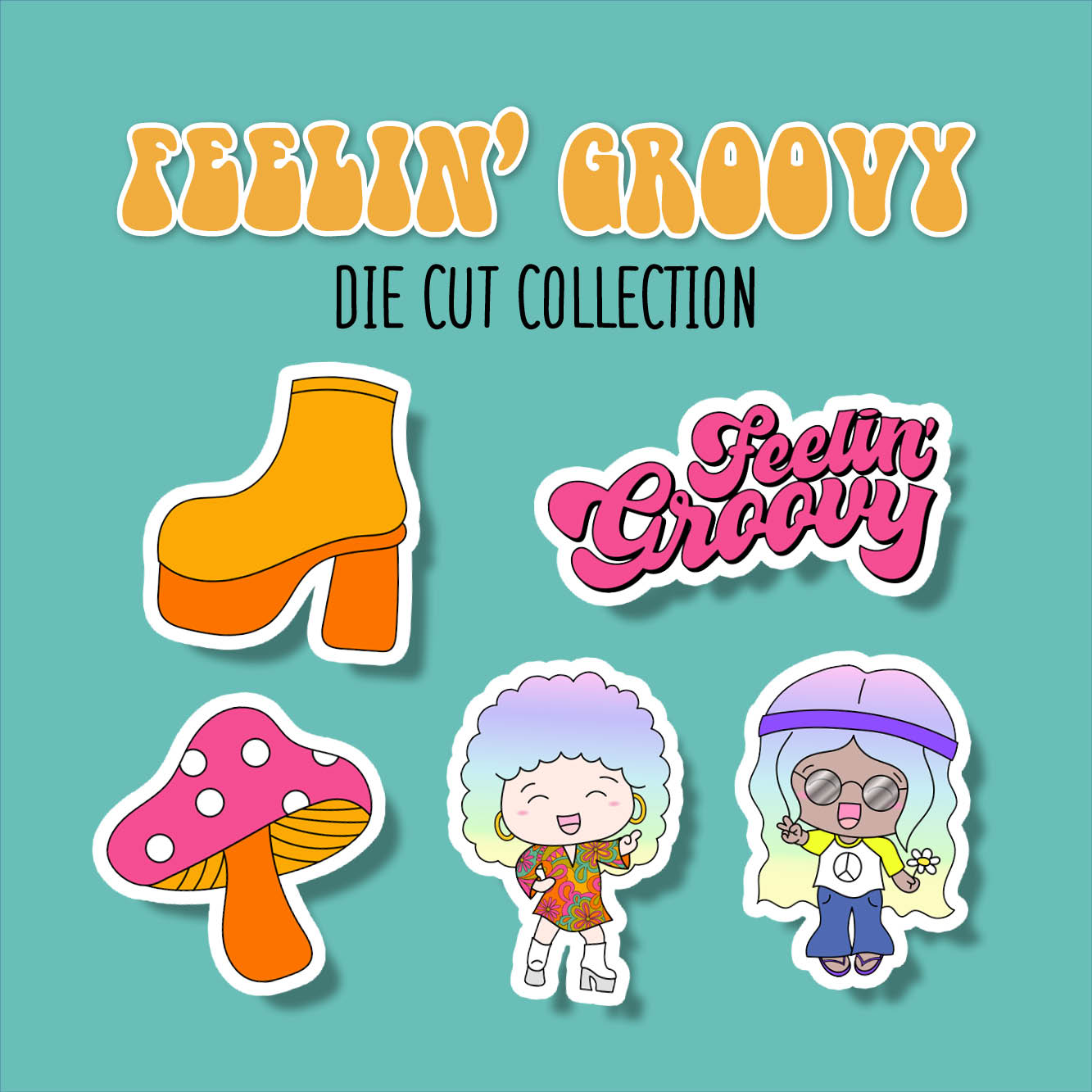 This is our Feelin' Groovy die cut collection. Purchase individually or get all 5 at a discounted price!