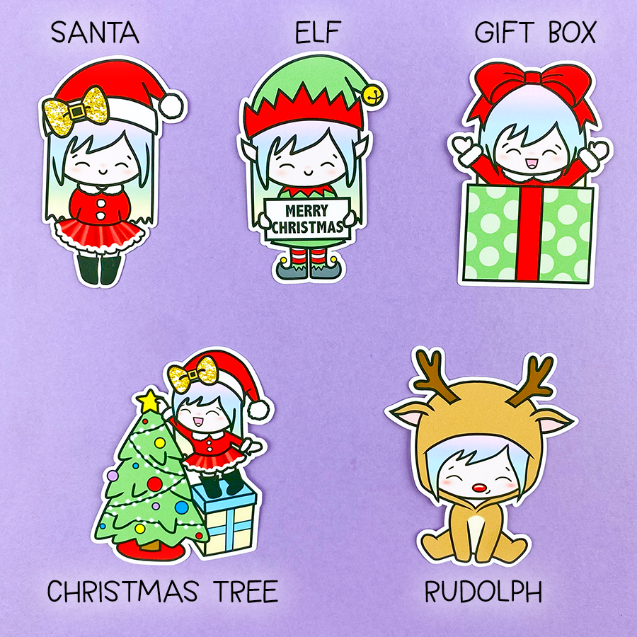 This is our original sticker die cut set from our old Luna Christmas collection . These are hand-drawn and our original design so you can't find them anywhere else! About 3". Purchase individually or all 5 for a discounted price.