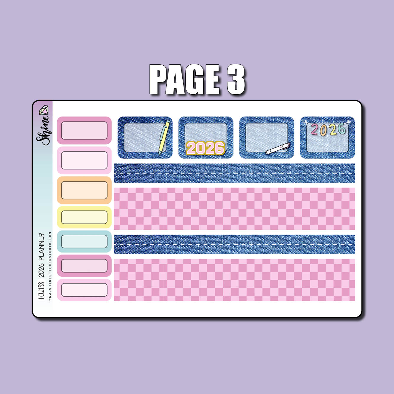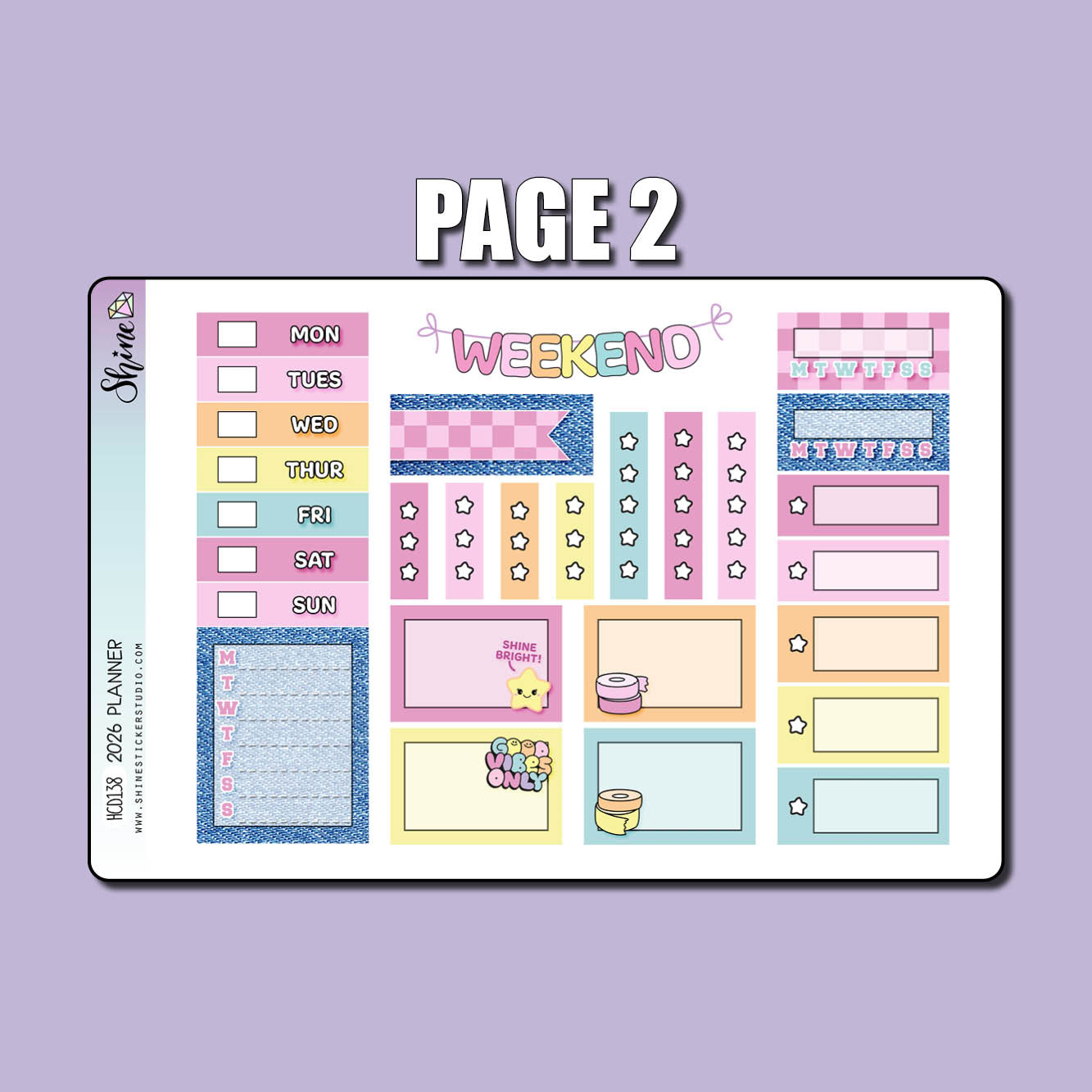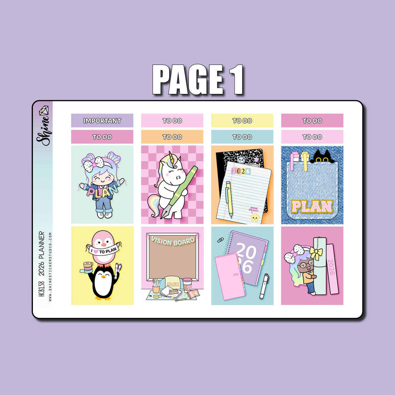 This adorable 2026 planner-themed kit is specifically designed for one weekly spread in your Hobonichi Cousin planner. Artwork in this kit was hand-drawn by us and features our shop characters Luna, Star, Popsicle, Pickle, and Edgar.