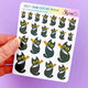 This listing is for a sheet of whimsical stickers showcasing our character, Edgar, encountering a dose of misfortune with a shattered mirror and toppled salt. We've all had unlucky days, so why not commemorate those times with a sprinkle of humor!
