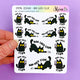 Our standard vertical, hobonichi cousin, and mini kit sticker kits and regular sticker sheets will fit perfectly in the pockets.