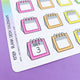 This listing is for decorative date number box stickers featuring artwork from our Back to School collection. There are a full month of stickers on the sheet, plus a couple extra decorative box stickers. These are .8" x .8" in size.