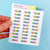 This sticker sheet features the word "Class" in rainbow colored bubble letters, .27" tall by .75" wide. There are 30 stickers on the sheet.