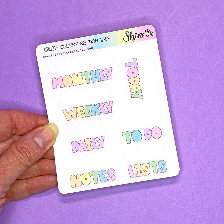 This listing is for our hand-drawn chunky letter planner section tab stickers, available in a pastel color scheme. Fold these in half and stick them on to your planner page or dashboard to make an instant bookmark or divider!