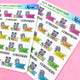 Printed on 3.625" x 4.5" sticker paper and kiss-cut for easy removal.