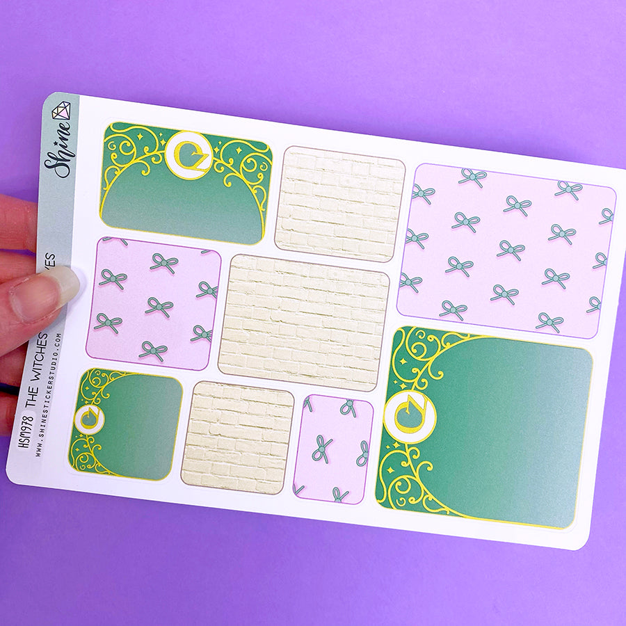 This listing is for this sheet of functional box stickers in a variety of sizes that match our The Witches of Oz collection.