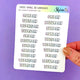 These are sized slightly smaller than the page, allowing for margins which makes for easier placement and centering. Choose your jumbo sticker sized from the following standard sizes: A6 (Hobonichi), Weeks (Hobonichi/PP), B6, and A5 (Hobonichi Cousin).