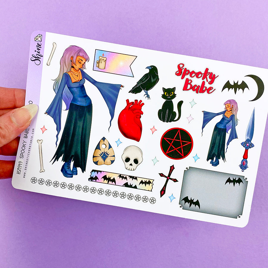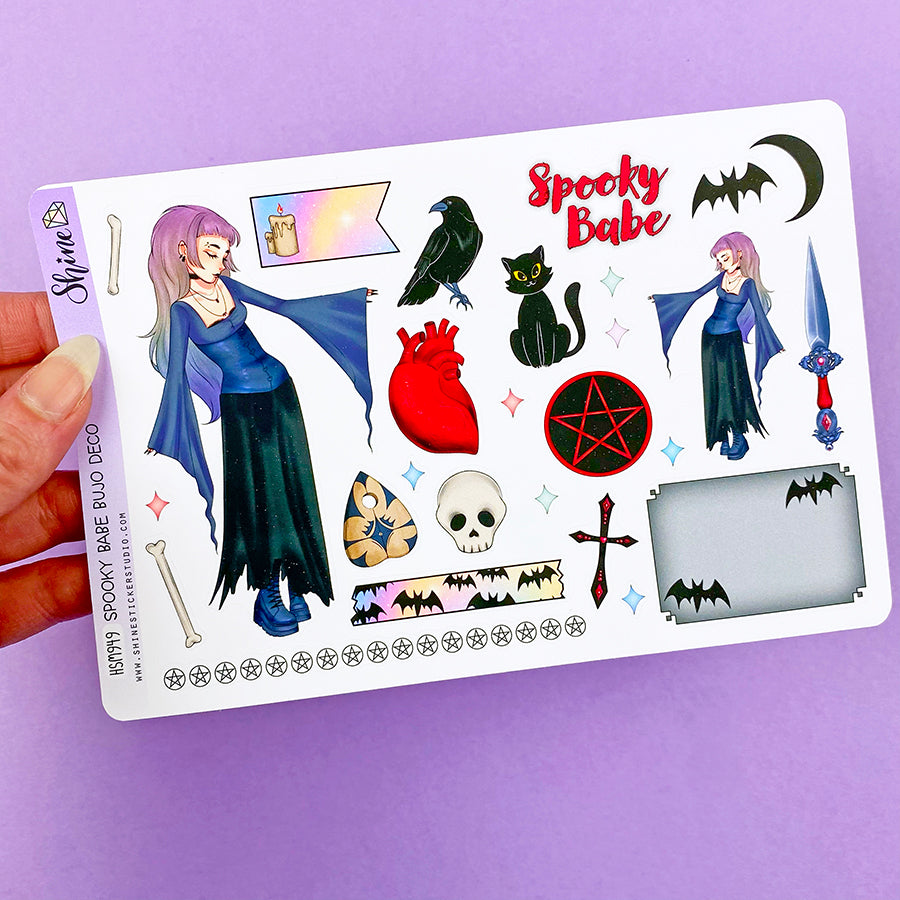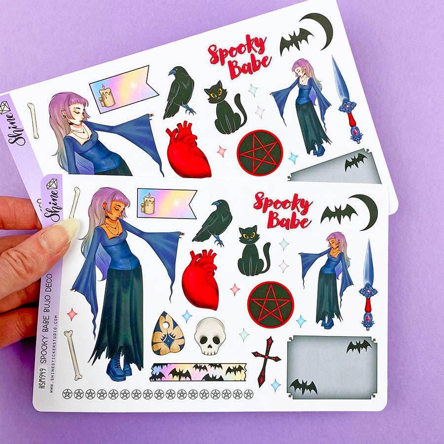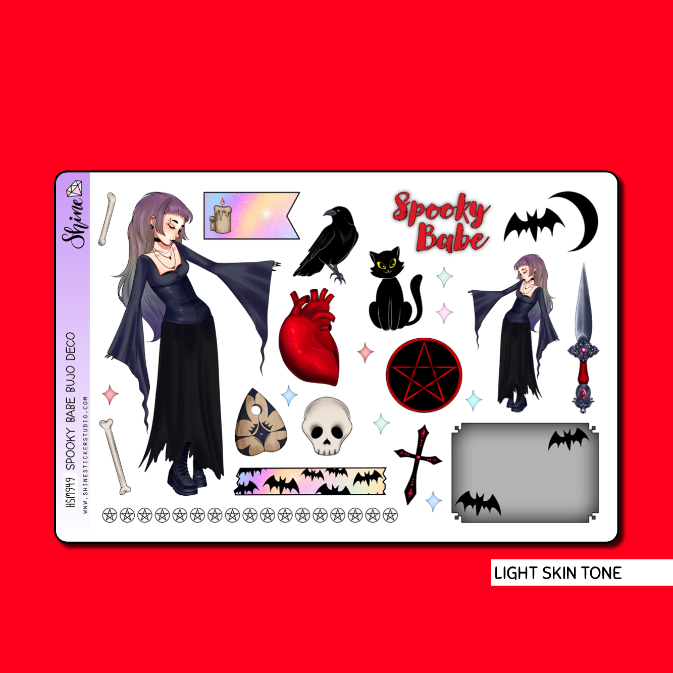 Embrace the dark charm of our Spooky Babe Bujo Deco Planner Stickers. Designed for those who dare to be different, these decorative stickers transform your planner into a gothic haven of organization featuring Luna and Edgar. Infused with eerie elegance and bold motifs, it keeps your layout wickedly stylish and effortlessly on track. Perfect for making every day a little more mysterious and a lot more unforgettable.