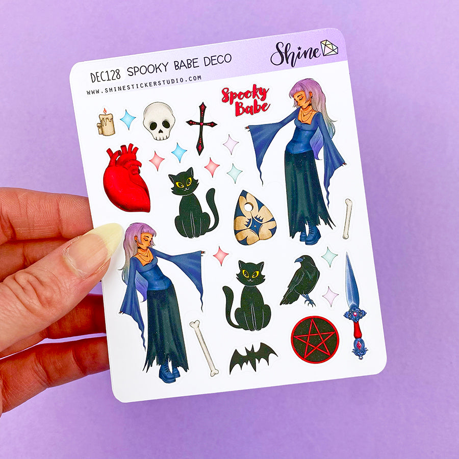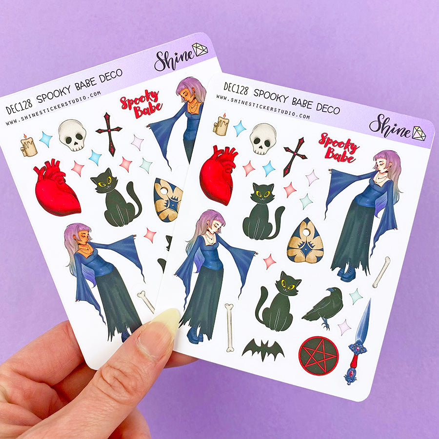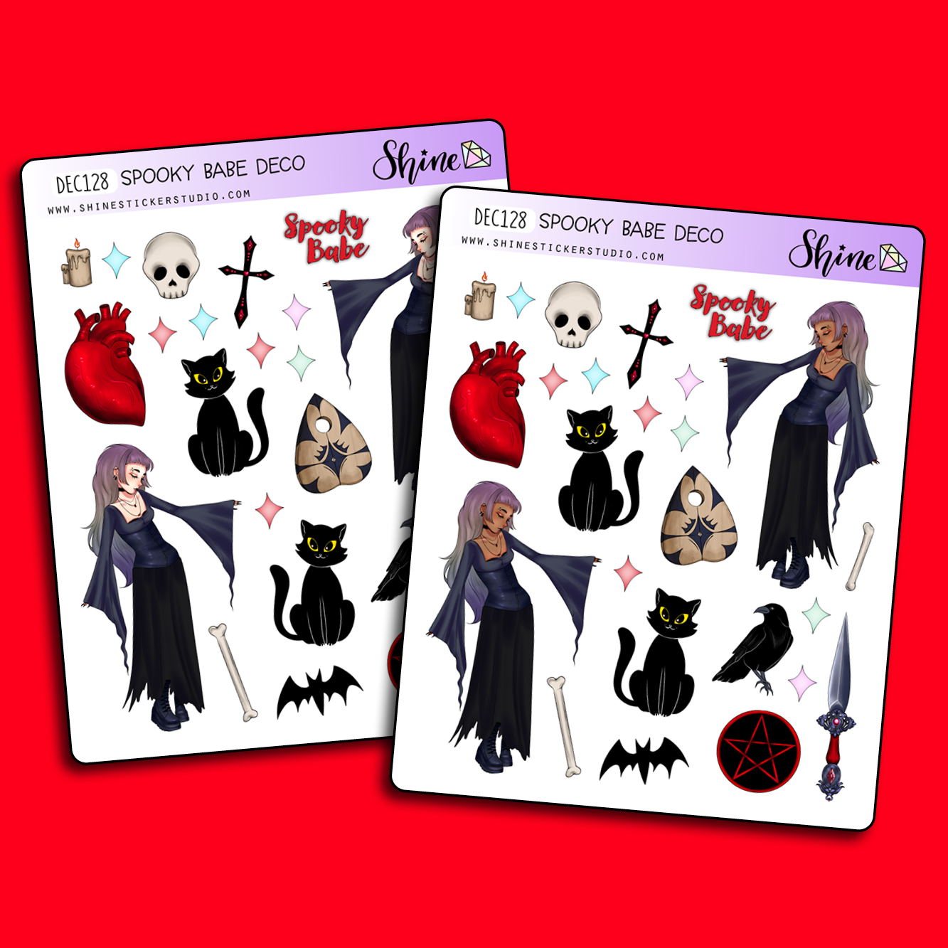 Embrace the dark charm of our Spooky Babe Bujo Deco Planner Stickers. Designed for those who dare to be different, these decorative stickers transform your planner into a gothic haven of organization featuring Luna and Edgar. Infused with eerie elegance and bold motifs, it keeps your layout wickedly stylish and effortlessly on track. Perfect for making every day a little more mysterious and a lot more unforgettable.