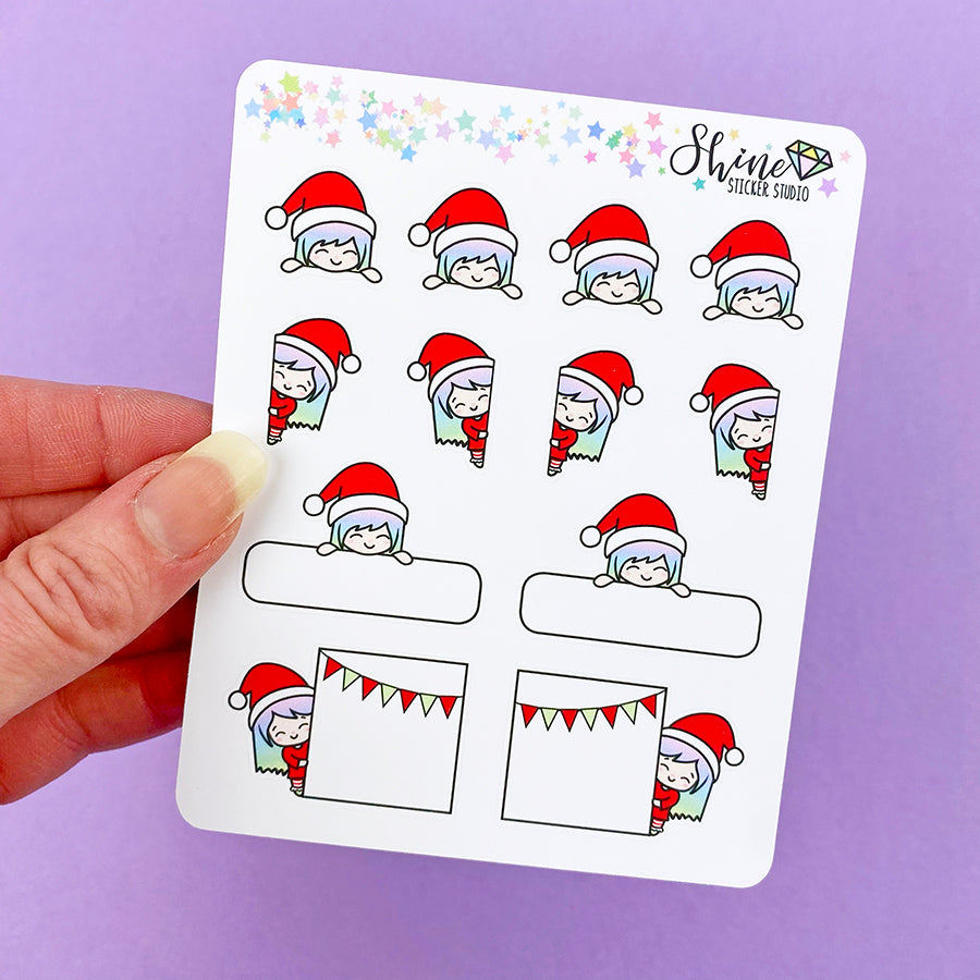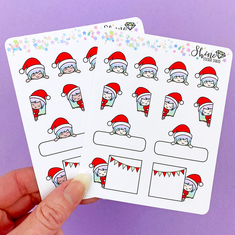 This is our original Luna Christmas Peekaboo stickers designed back in 2017. These feature our character Luna wearing a Santa outfit, posing in peekaboo and box formats. Choose light or dark skin tone for Luna.