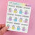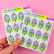Printed on 3.625" x 4.5" sticker paper and kiss-cut for easy removal.