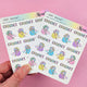 This listing is for a washi wallet (mini sticker album) featuring our character Luna with her planner against a rainbow gradient background. These are the cutest, littlest sticker albums! There are 60 top-loading sleeves (approximately 3"x3.75") which you can use to store washi samples, die cuts, sticker samplers, etc. The album covers are printed on our premium matte sticker paper and laminated with a clear overlay for protection. Choose light or dark skin tone for Luna.
