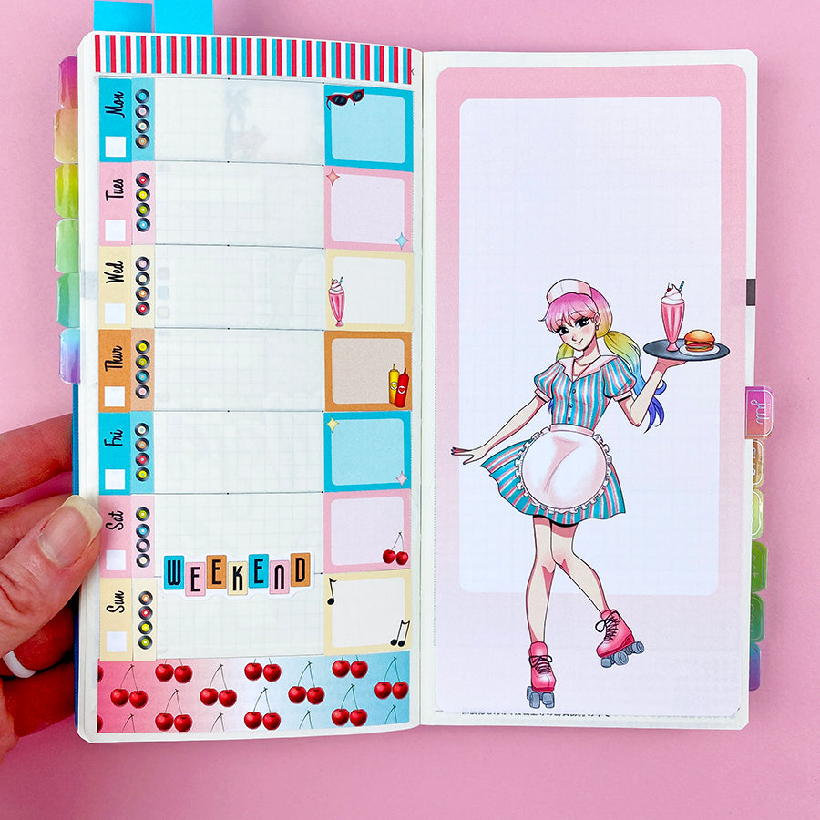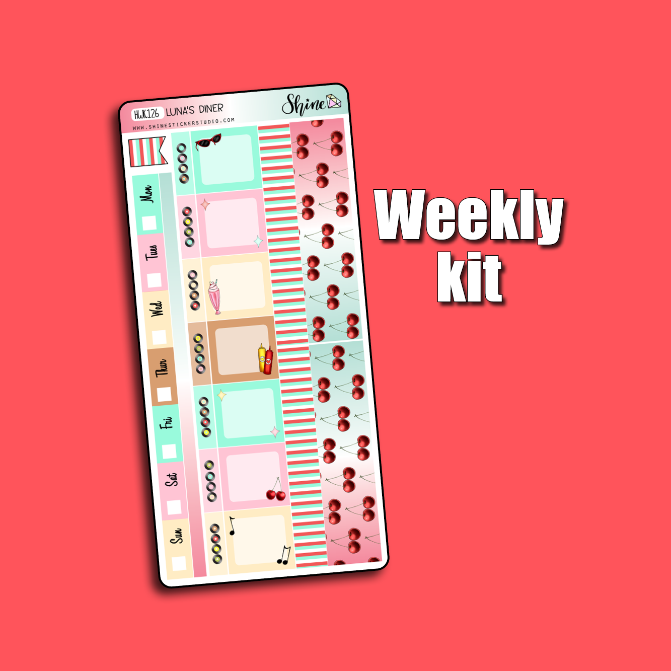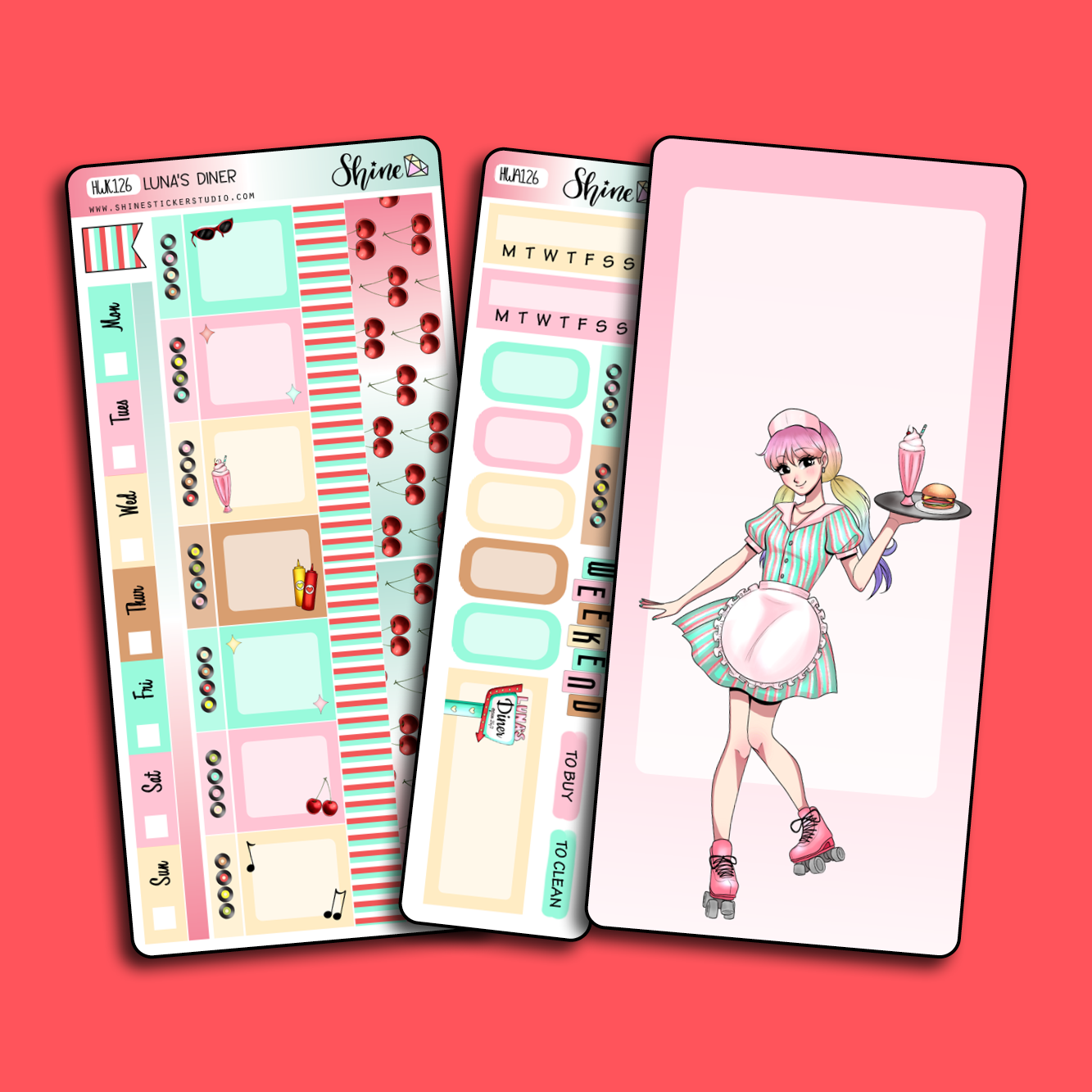 Step into the charm of the 1950s with our Luna's Diner collection. Featuring our adorable characters Luna, Popsicle, and Pickle, this kit brings a fun diner vibe to your planner. Perfect for adding a nostalgic touch while keeping your week organized with style and personality.
