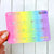 This listing is for one sheet of these holo foil tab stickers printed with a rainbow gradient background. The tabs are approximately .86" wide. There are 12 tab stickers on the sheet: AB, CD, EF, GH, IJ, KL, MN, OP, QR, ST, UV, and WXYZ .