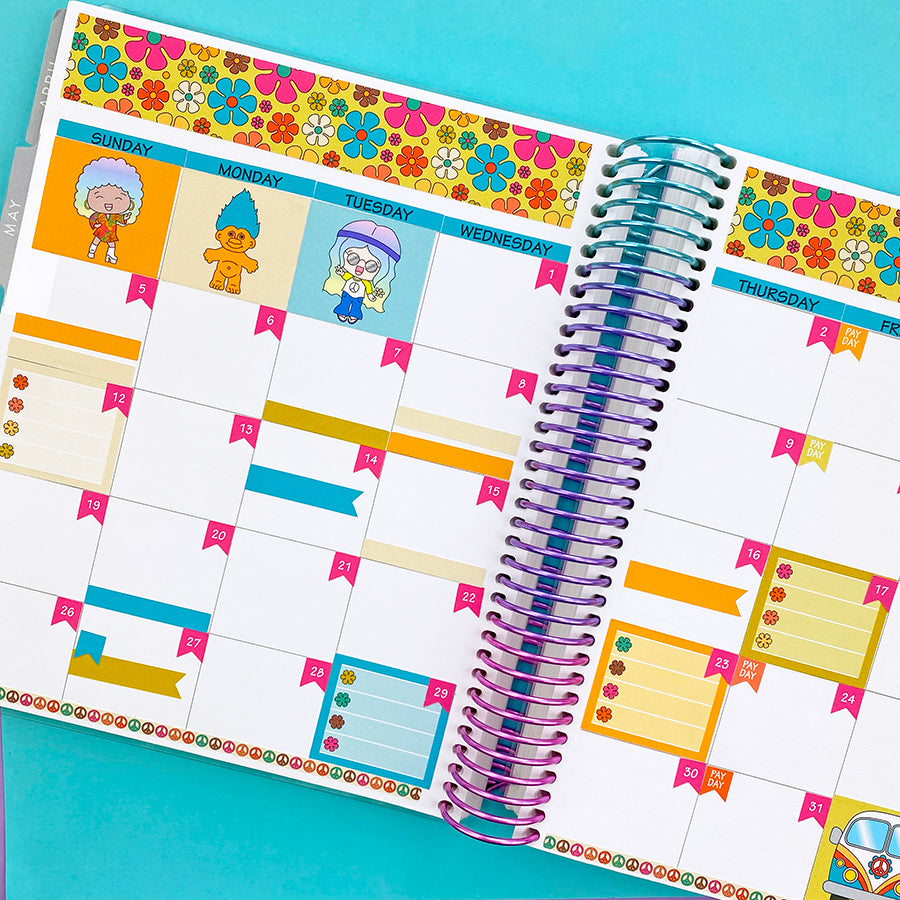 This is an adorable monthly kit featuring elements from our Feelin' Groovy collection formatted for standard vertical planners such as the Happy Planner, Erin Condren, etc.