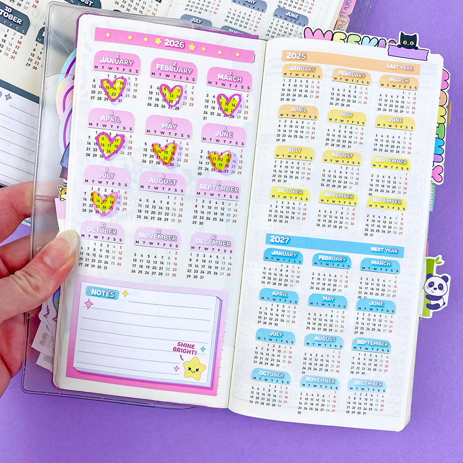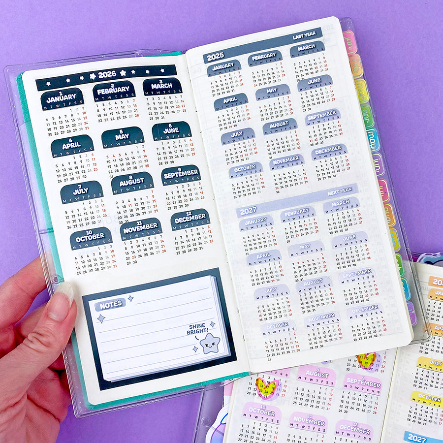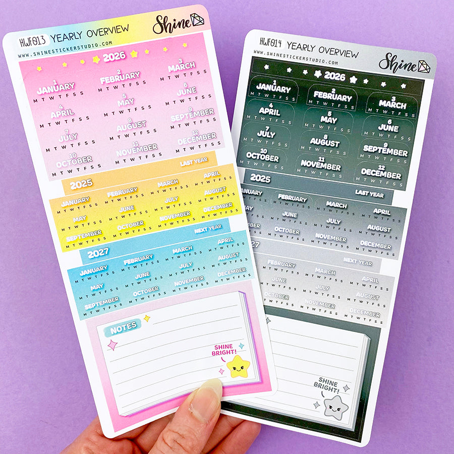 This listing is for one yearly overview sticker kit for a 2026 Hobonichi Weeks planner. Choose between colorful or monochrome versions.