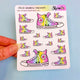 Printed on 3.625" x 4.5" sticker paper and kiss-cut for easy removal.