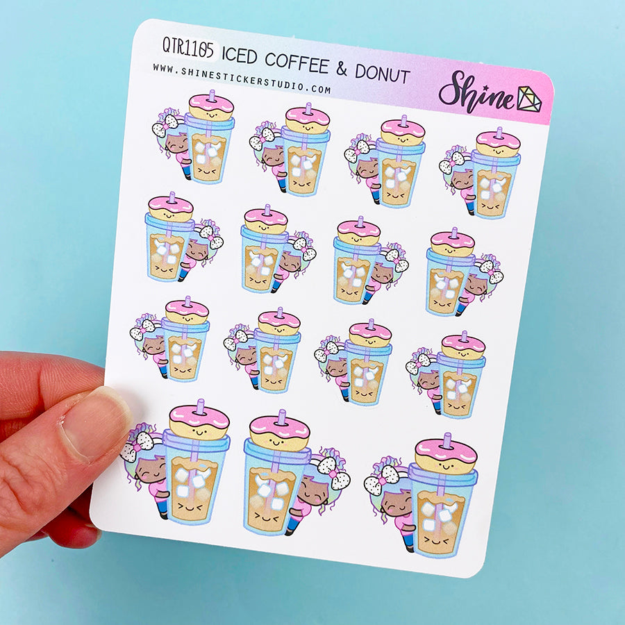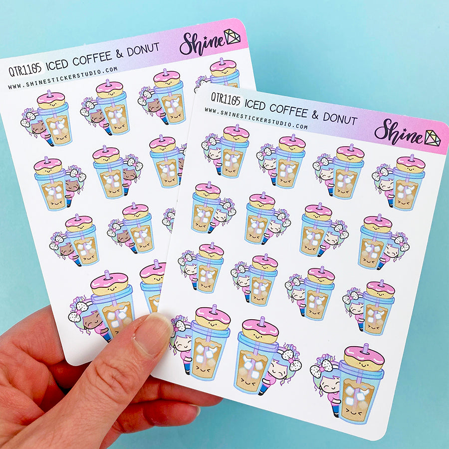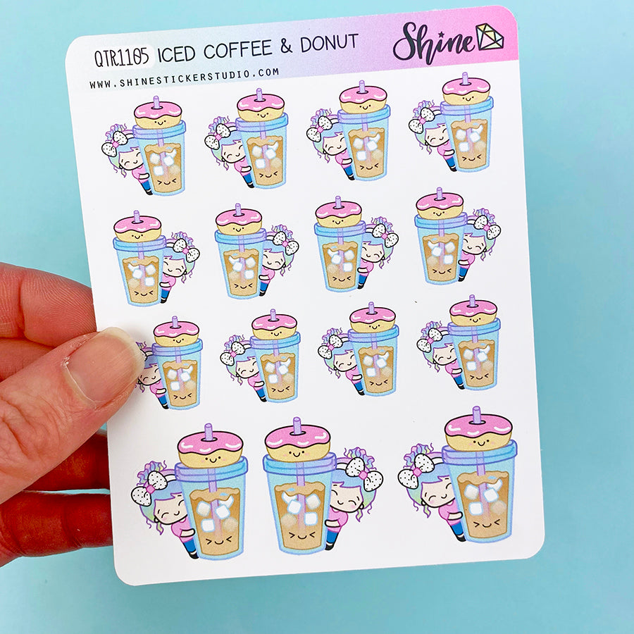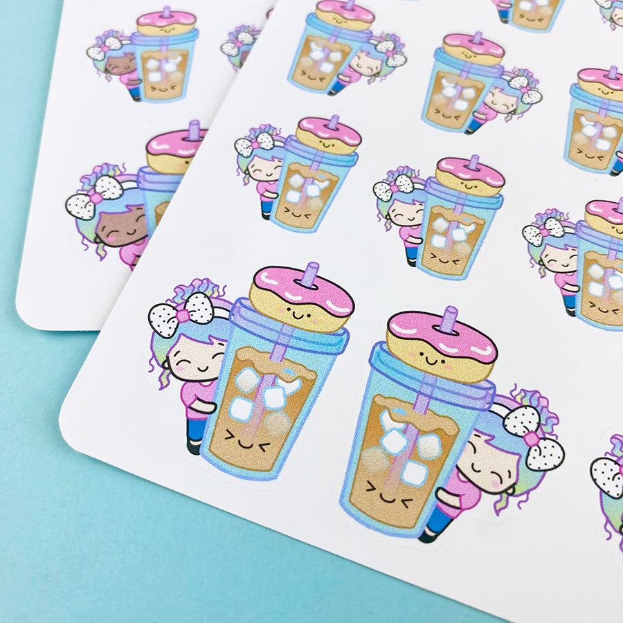 This listing is for one sheet of adorable stickers featuring Luna with her iced coffee and donut.