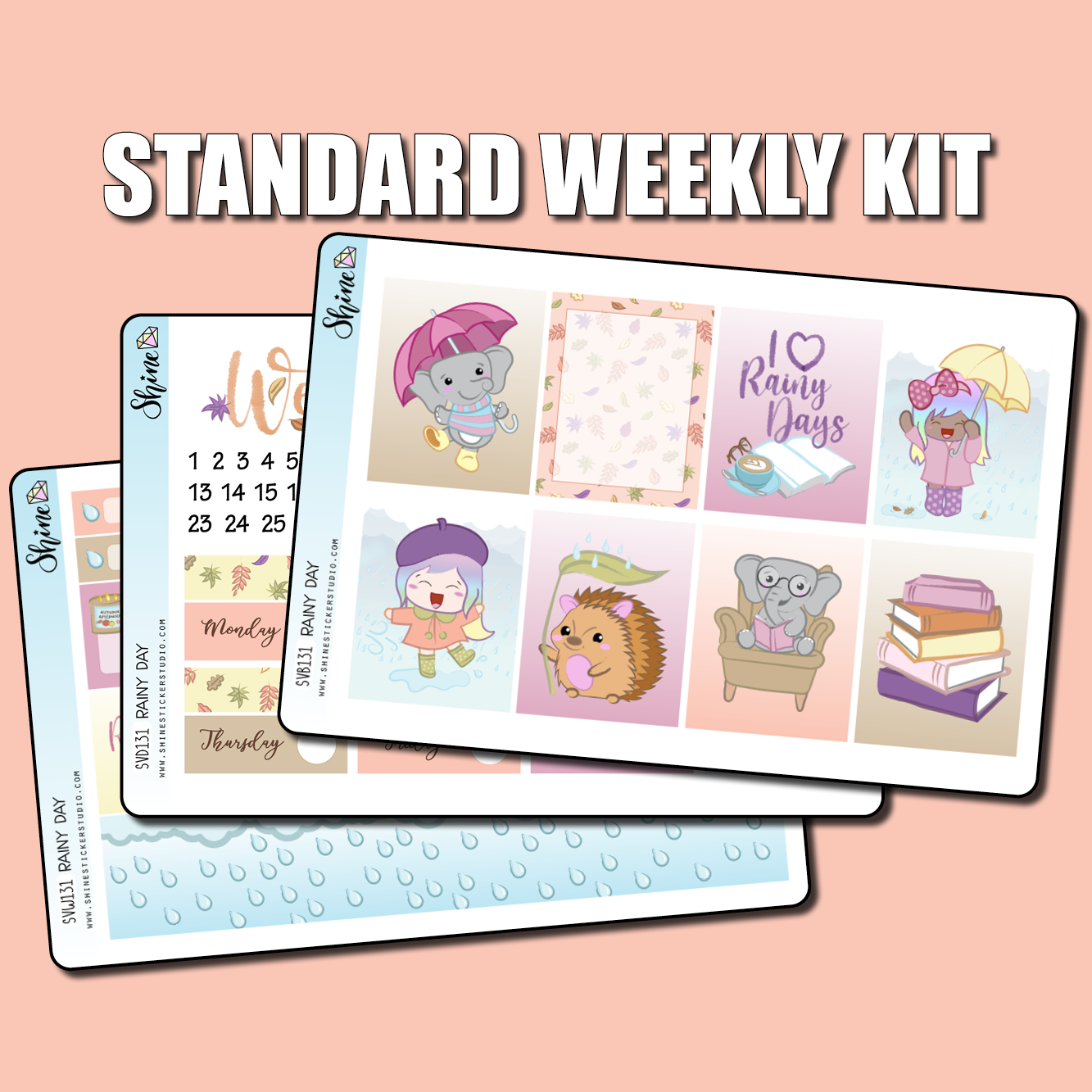 Brighten your planner with this charming weekly sticker kit designed for Standard Vertical layouts, starring our lovable Luna and Ella the Elephant. Perfect for fans of cozy rainy autumn days, these stickers invite you to jump in puddles or snuggle up with a favorite book.