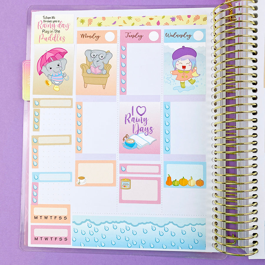 Rainy Day Vertical Weekly Planner Sticker Kit