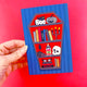 The "Beware I bite" die cut features sparkly red foiling against a black background.