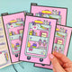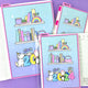 These 2025 pencil boards are printed on our matte white card stock and feature a cute craft room scene with all of our shop characters featured in various ways, with a striped pattern on the back.