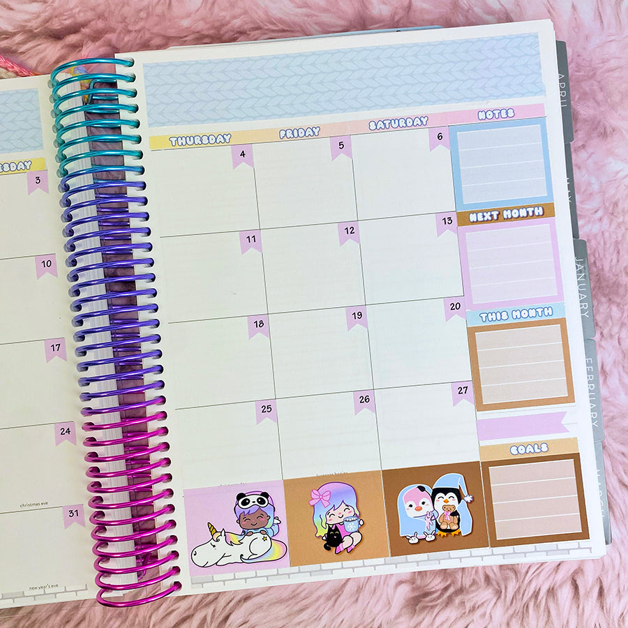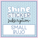 When you subscribe you'll be charged upon signing up and then on the 10th of every month thereafter, and your happy mail will be ship out on or around the 20th. Although you may add other subscription bundles to your cart, please purchase the subscriptions separately with no non-subscription items in your cart. You can select either our premium matte or matte removable vinyl for the large sticker sheets in your subscription. All of the items in this subscription will be added to the shop separately at a later date. Monthly freebies will not be included in the subscription orders. If you're located in the UK/EU you can purchase the subscription from our Etsy store. Please reach out to us via email if you're interested in subscribing. Our email is shinestickerstudio@gmail.com