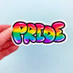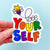 This is a laminated decal featuring a cute rainbow Pride bumble bee with the words "Bee Yourself" in classic Pride colors.