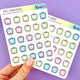 Printed on 3.625" x 4.5" sticker paper and kiss-cut for easy removal.