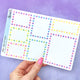 This listing is for a sheet of washi strip stickers sized to fit the Hobonichi Cousin daily pages, although these could also be used in the weekly pages if you wanted. The large strips are great for the bottom of the page, and the smaller can be used to divide the right side column. These feature artwork from our Sweater Weather collection.