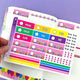 This kit is specifically designed for one weekly spread in your Hobonichi Cousin planner. Artwork in this kit was hand-drawn by us and features our characters Luna, Pickle, Popsicle and Star.