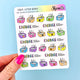 This listing is for a sheet of washi strip stickers sized to fit the Hobonichi Cousin daily pages, although these could also be used in the weekly pages if you wanted. The large strips are great for the bottom of the page, and the smaller can be used to divide the right side column. These feature artwork from our Y2K collection.