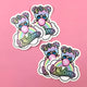 This is an adorable die cut vinyl decal featuring our own hand drawn artwork featuring a bow in rainbow colors against a holographic background.
